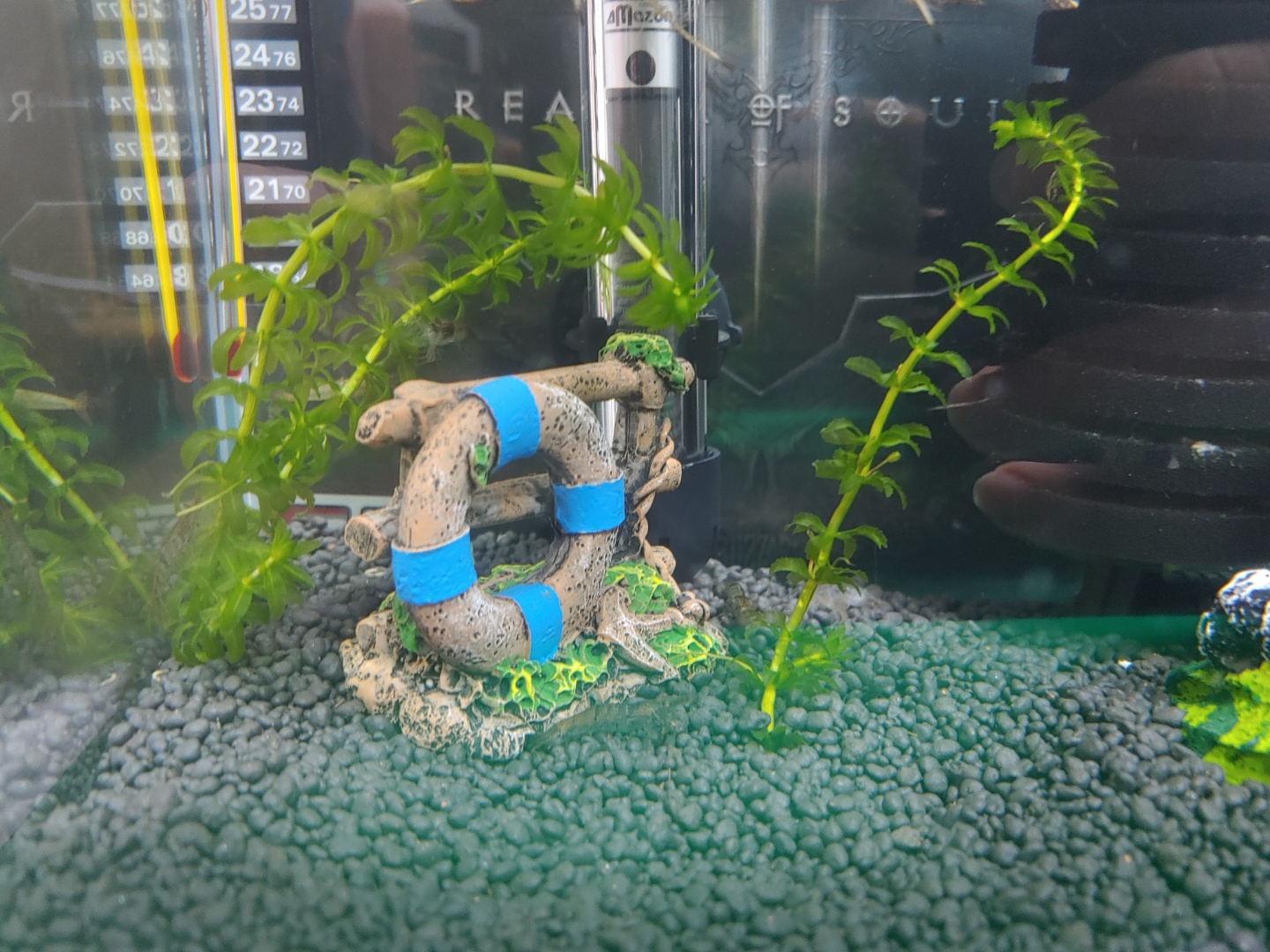 조만간 수초가 더 자라면 잘라 내어서 근처에 또 심을 계획이다. 장기적으로는 어린 치새우들이나 구피 새끼들이 숨을 수 있는 은신처처럼 만드는 것이 목표다.